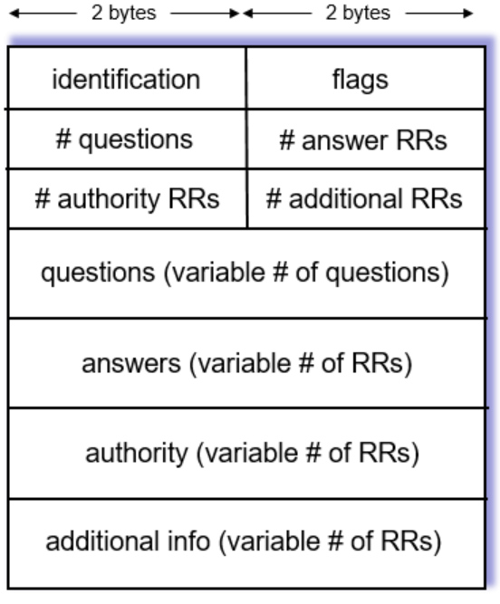 DNS도 message를 통해 qeury를 보내고 reply를 받는다. 이 때, message format은 다음과 같다.