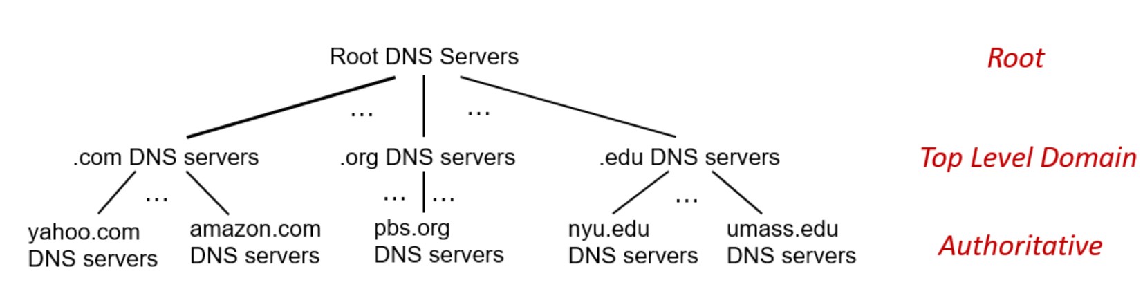 DNS는 수많은 name server들이 존재하고, 이를 조금 더 효율적으로 관리 하기 위해, 계층적인 구조를 만들었다. 정확한 계층 구조라고 할 수는 없지만, 즉, 계층별로 수평적인 관계를 가지진 않지만, 관리를 쉽게하기 위해 만든 것임을 알고 넘어가면 된다.