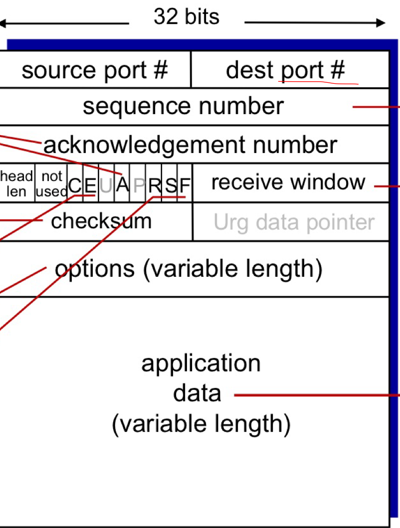 - receive window : 흐름 제어를 위한 field(receiver 측에서 여유 공간의 크기를 보낼 때 사용)