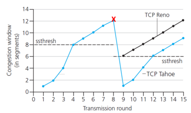 이렇게 TCP slow start와 Congestion avoidance를 동시에 활용해 congestion control을 구현하는 경우도 있다.