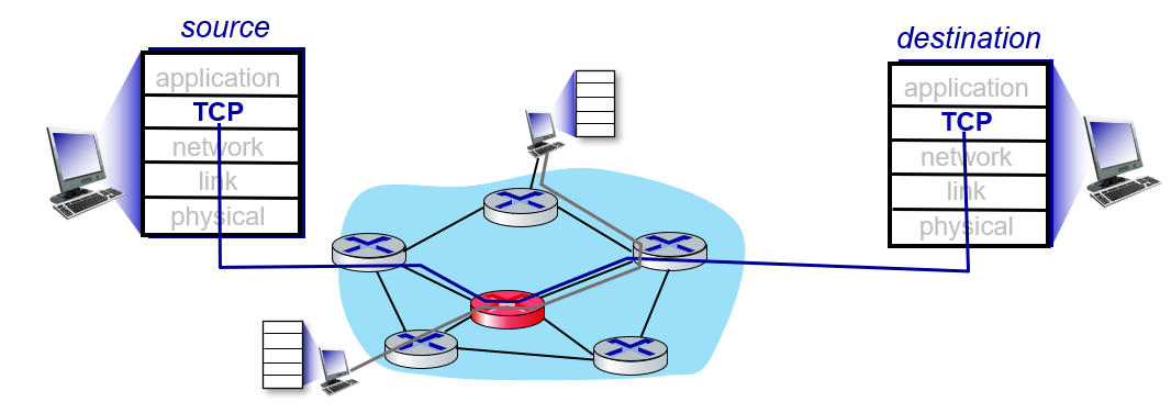 - congestion control은 너무 많은 sender가 너무 빨리 보낼 때, network에서 발생하는 것이다.