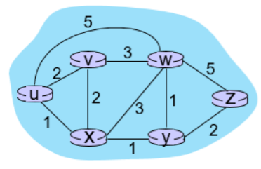 해당 코드를 이용해 다음 주어진 상황을 link-state 알고리즘을 해결해보자. 이때 시작점은 u라고 가정한다.