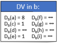 즉, 초기에는 direct 하게 연결된 a,c,e값의 DV밖에 모른다. 그렇지만 이때, a,c,e로 부터 DV값을 공유 받게 되면,