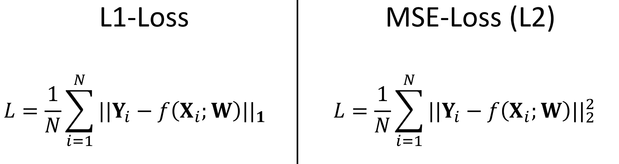 왼쪽 식이 MSE Loss(L2 Loss), 오른쪽 식이 L1 Loss로 나타낸 것이다. 즉, 일반화 시키면 다음과 같은 식이 나온다.