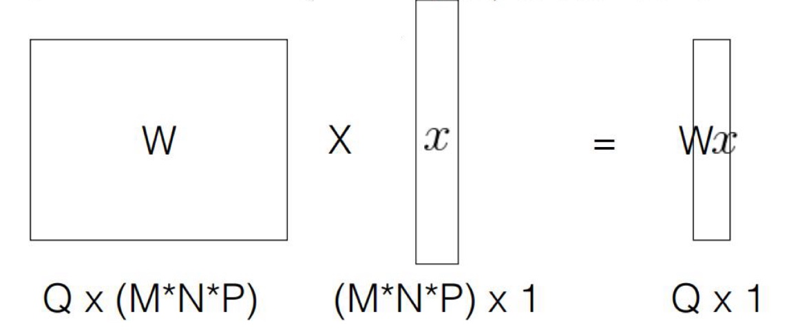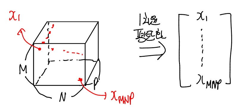 - x: 평탄화된 입력 벡터((MNP) x 1)