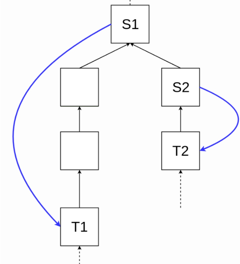 - 체크포인트에 대한 투표로, 한 명의 validator가 (S1, T1), (S2, T2)로 투표를 진행했다.