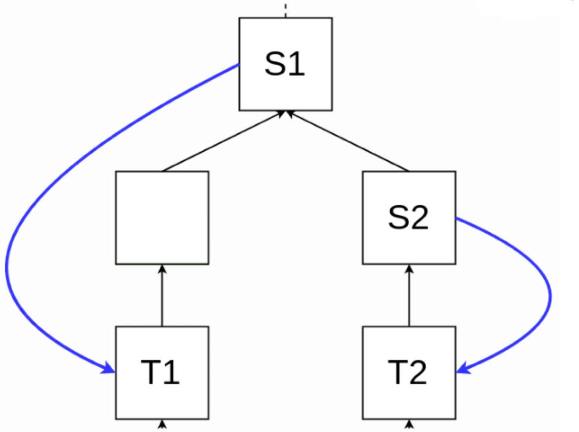 - 이때, T1과 T2는 같은 height에 있다.