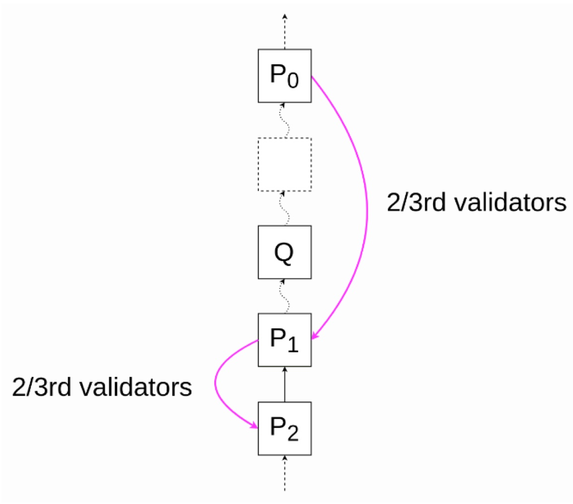 - P0를 justified 블록이라고 하고, Q보다 엄청나게 높은 블록이라고 가정하자.