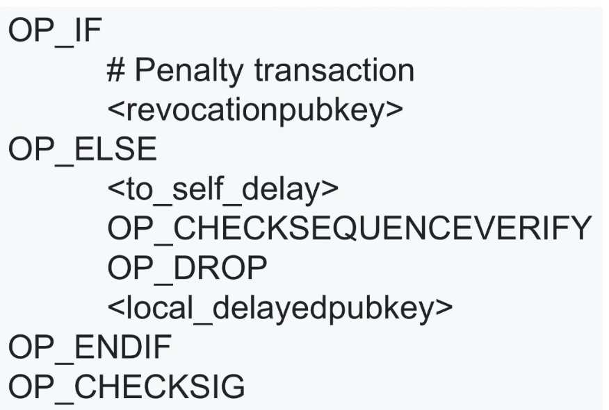 - 즉, IF와 1로 참임을 확인한 뒤에 revocation key와 revocationpubkey를 대조해 일치하면 Alice의 output을 사용할 수 있다.